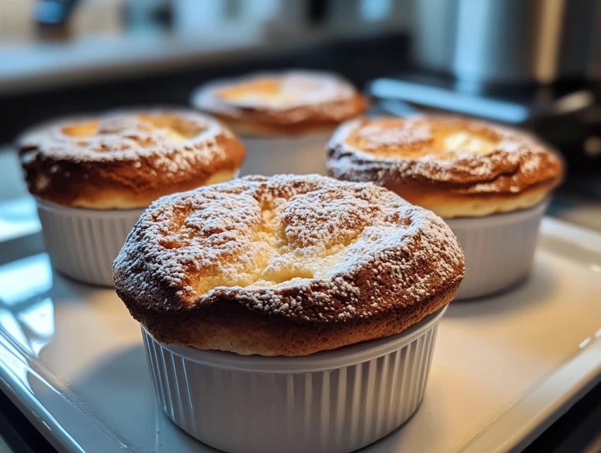 - Servir immédiatement : Une fois cuits, sortez les soufflés du four et servez-les immédiatement. Ils commenceront à retomber après quelques minutes, donc il est préférable de les déguster dès qu’ils sont prêts.